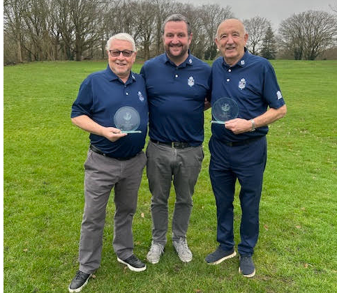 Gerry Caley (left)John Parkin (right)Wanstead GC been presented with runners up pairs order of merit by Wayne Moriarity Jubilee Cup Captain