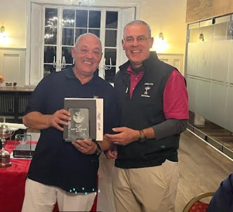 Above a Victorious Wanstead Golf CLUB’s Captain Wayne Moriarity receiving the 2025 Winners cup from Jim Davis Jubilee Cup Commitee